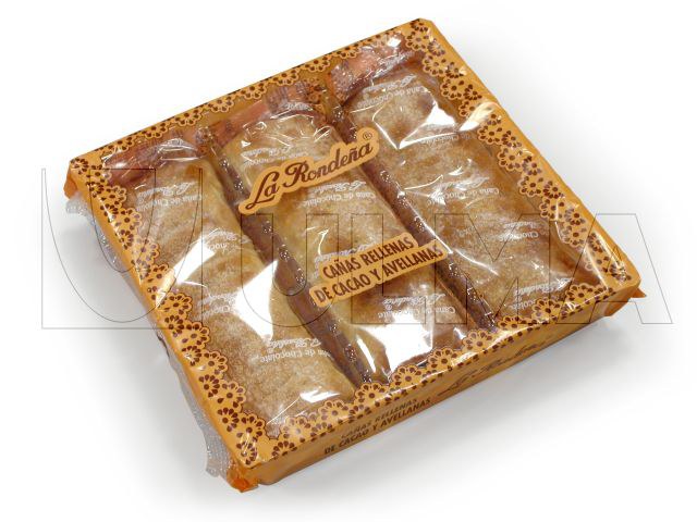 Mit Creme gefüllte Gebäckrollen in Schlauchbeutelverpackung (hffs)