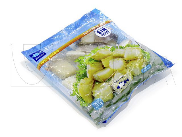 Verpackung von Kabeljau-Stücken in vertikaler Maschine (vffs) 1854_1.jpg VTI 600 Vertikale Verpackungsmaschine (VFFS) welche Verpackungen mit drei Siegelnähten herstellt. Vertikale, intermittierende Hochleistungsmaschine für mittlere bis hohe Produktionskapazitäten.