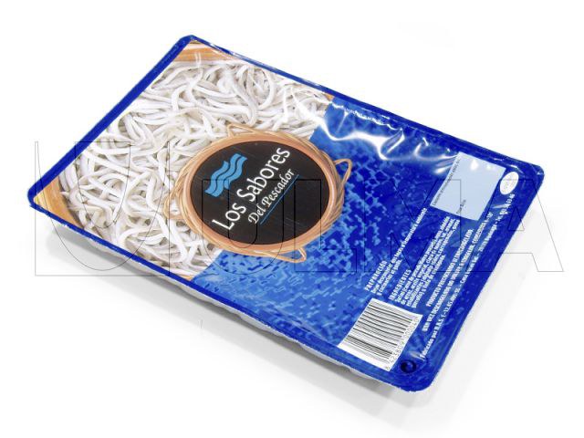 Verpackung von künstlichem Aal (Gulas)mit Hartfolie im Thermoformverfahren 1843_1.jpg TFS 700 Hygiene spezifizierte Tiefziehanlage für Weich- oder Hartfolie zur Verpackung unter modifizierter Schutzatmosphäre (MAP) und Vakuumoption. Die Höchstleistungstiefziehanlage.