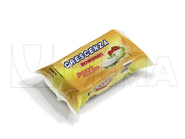 Frischer Käse im Schlauchbeutel verpackt. 1694_1.jpg FM 300 Horizontale Schlauchbeutelmaschine (HFFS), welche hermetisch versiegelte Schlauchbeutel mit drei Siegelnähten zur Verpackung von frischen Lebensmitteln unter modifizierter Schutzatmosphäre (MAP)herstellt. Hohe Produktionsleistung.