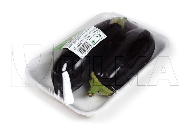 Auberginen-Schalenverpackung in Stretchfolie 1906_1.jpg SUPER CHIK Automatische Dehnfolien-Verpackungsmaschine für die Produktverpackung in Schalen. Hohe Produktionsleistung. Speziell entwickelt für Supermärkte und Verpackungszentren (Fleisch, Geflügel, Fisch, Obst und Gemüse).