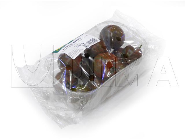 Kumato-Tomaten Schalenverpackung im Schlauchbeutel. 1954_1.jpg ATLANTA Horizontale Schlauchbeutelmaschine (HFFS), die Schlauchbeutelpackungen mit drei Siegelnähten herstellt. Für hohe Produktionsleistungen.