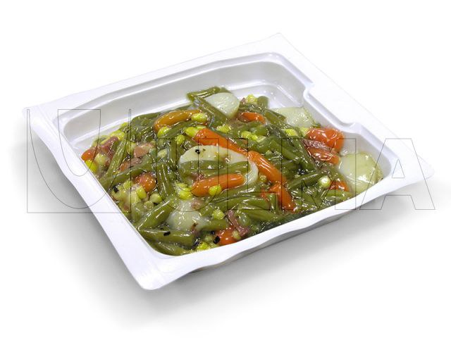 Fertiggemüse-Eintopf mittels Tiefziehverfahren in Skin-Packung 1971_1.jpg TFS SKIN Hygiene-Schrumpffolienverpackungsanlage - die Verpackungen schützen das vakuum-verpackte Produkt und sitzen wie eine zweite Haut. Besondere Folien können das Erscheinungsbild des Produkts unterstützen.