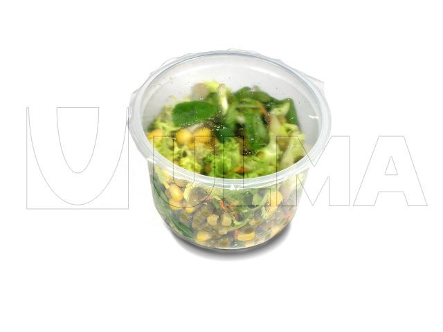 Frischer Salat in festen Behältern schalenversiegelt unter modifizierter Schutzatmosphäre
