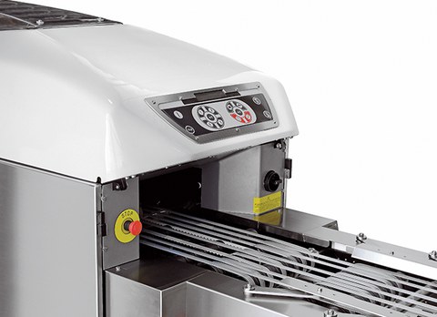 Sehr flexibler Automat zur Verpackung von Frischprodukten mit Stretchfolie auf Schalen. Maschinen dieser Art sind ausschließlich für den Nahrungsmittelmarkt bestimmt.