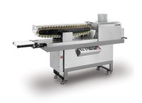 Automatische Dehnfolien-Verpackungsmaschine für die Produktverpackung in Schalen. Hohe Produktionsleistung. Speziell entwickelt für Supermärkte und Verpackungszentren (Fleisch, Geflügel, Fisch, Obst und Gemüse).