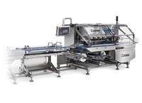 Horizontale Schlauchbeutelmaschine (HFFS), welche zur Verpackung von frischen Lebensmitteln unter modifizierter Schutzatmosphäre (MAP)hermetisch verschlossene Schlauchbeutel mit drei Siegelnähten herstellt. Bis zu 250 Produkte/Min.