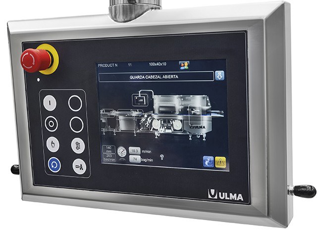 Die Maschine wird von einem Industrie-PC mittels 10" HMI Touchscreen gesteuert, was sowohl die Anwendung durch den Bediener über die grafische Benutzeroberfläche als auch die Verbindung der Maschine mit der produktiven Umgebung erleichtert.