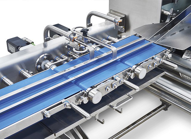 Die Maschine ist mit einem LD (Long Dwell) Quersiegelkopf ausgerüstet, welcher dank seiner langen Siegelzeit und Drehbewegung die Luftdichtheit der Verpackung auch bei hohen Stückzahlen gewährleistet.