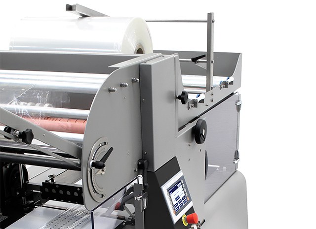 - Ausgestattet mit einem Doppelrollenhalter für Rollen bis zu 850 mm Breite und 350 mm Durchmesser.