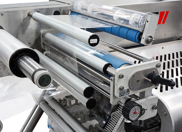 - 3 Rollenpaare für den Längsfolienabzug und die Versiegelung.