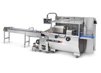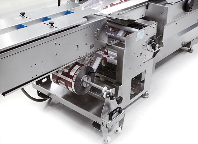 Horizontale Schlauchbeutelmaschine (HFFS) welche eine Schlauchbeutel-Packung mit drei Siegelnähten herstellt. Speziell ausgerichtet auf Bäckereien, Keks-, Schokoladen- und Süßwarenindustrie.