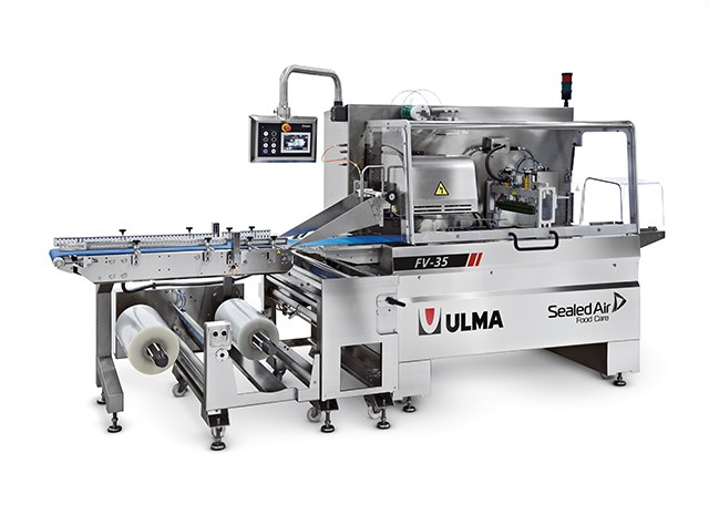 Die ULMA FV 35 Maschine ist eine Verpackungsmaschine mit Folie von unten, die die CRYOVAC® Barriere-Folie von unten zuführt. Die CRYOVAC®-Folie wird abgewickelt, während das Produkt automatisch auf die Folie positioniert wird und durch das Längssiegelsystem läuft. Dadurch wird eine Verunreinigung der Quersiegelung verhindert, da das Produkt nicht mit dem Siegelbereich in Berührung kommt.