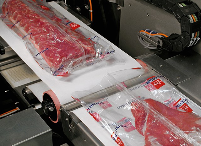 Die CRYOVAC® Barrierefolie wickelt sich von der Rolle ab, während das Produkt in das Längssiegelkopfsystem läuft. Dadurch wird eine Verunreinigung der Quersiegelung verhindert, da das Produkt nicht mit dem Siegelbereich in Berührung kommt.