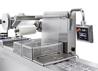 Die TFE 500 ist eine Tiefziehanlage für Verpackungen unter modifizierter Schutzatmosphäre (MAP) und Vakuum mit Weich- oder Hartfolie. Für mittlere bis hohe Produktionsleistung.