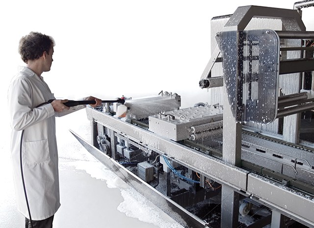 Hygiene spezifizierte Tiefziehanlage für Weich- und Hartfolie zur Verpackung unter modifizierter Schutzatmosphäre (MAP) und Vakuumoption. Die Höchstleistungstiefziehanlage.