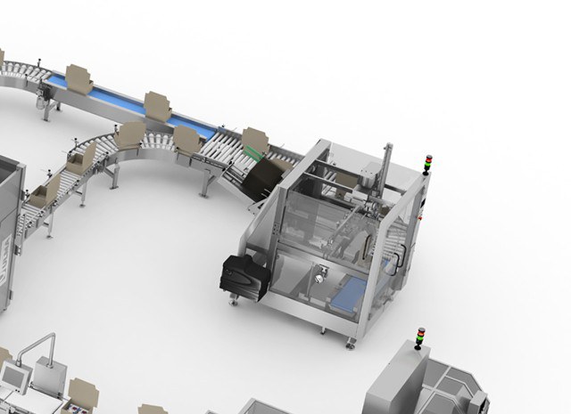 Der Kartonverschließer ist ebenfalls ein formatübergreifendes und automatisches Gerät, das die aus den beiden Kartonverpackungszellen kommenden Kartons verschließt. Der Formatwechsel ist konfigurierbar und vollständig automatisch, so dass die vom Kunden gewünschte Gesamtzahl an Referenzen durchgeführt werden kann.