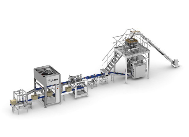 Komplette automatisierte Linie für das Verpacken von Nuggets und panierten Produkten