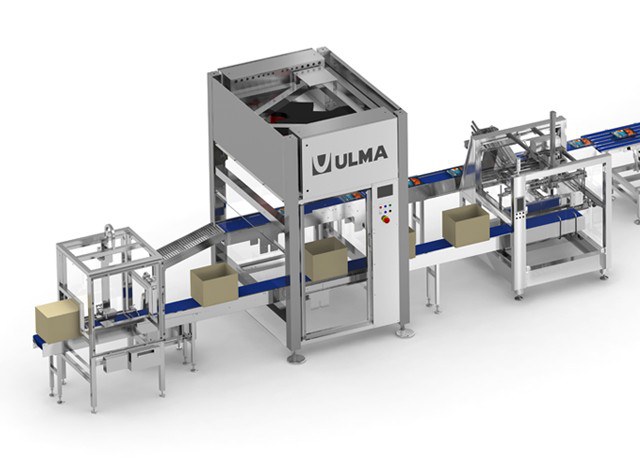 Der Kartonaufrichter fertigt die Kartons aus Kartonschachteln, sodass sich später die Roboter-Kartonpackzelle mit den aus der vertikalen Schlauchbeutelmaschine kommenden Packungen füllt.