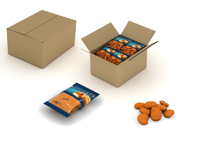 Vollautomatische Verpackungslinie zum Verpacken von Chicken Nuggets und panierten Produkten