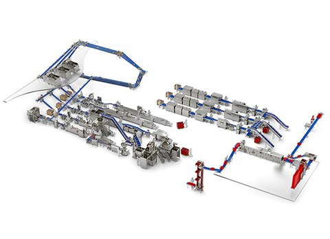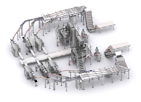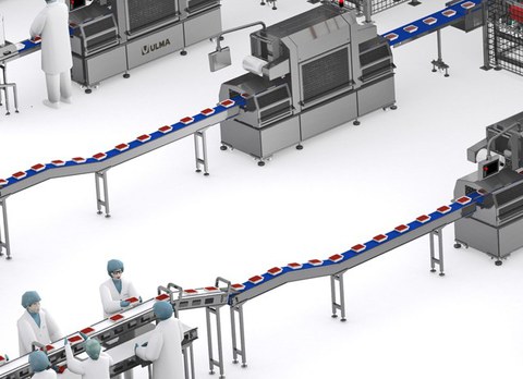 Vollautomatische Lösungen für die Fleischindustrie. Von der Handhabung und Verladung des Produkts bis hin zur endgültigen Kistenverpackung und Palettierung.