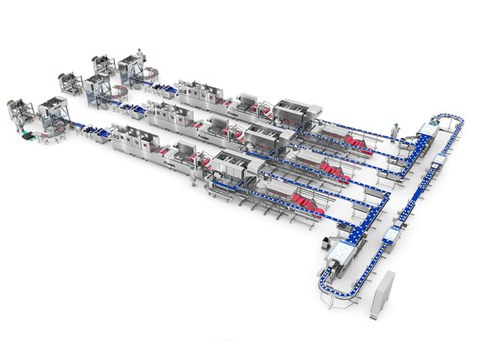 Vollautomatische Lösungen für die Käseindustrie, die von der Handhabung des Produkts von der Belüftung über den Handlingbereich bis hin zur endgültigen Kistenverpackung und Palettierung reichen.