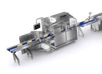 Das FLOW-VAC® -System bietet durch eine einfache Lösung die Möglichkeit, den Vakuumverpackungsprozess zu automatisieren, und dies zu einem sehr wettbewerbsfähigen Investitionsniveau. Die Maschine besteht aus einer unteren Rolle, in der die Folie unter dem Produkt zugeführt wird. Dies ist wichtig, um eine Verunreinigung des Siegelbereichs zu vermeiden.