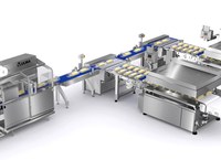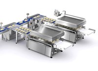 Die hohe Produktivität des FLOW-VAC®-Systems ermöglicht sogar die automatische Beladung von bis zu zwei Vakuumkammern, indem zwei 90º-Transfersysteme verwendet werden.