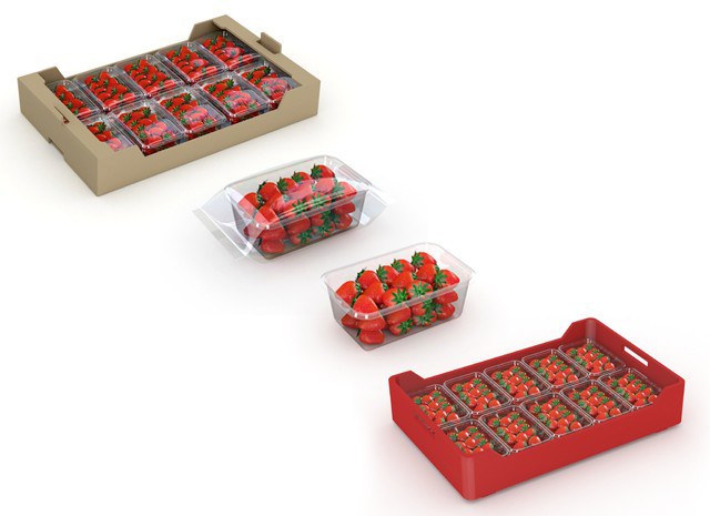 Komplettlösung für das Verpacken von Erdbeerschalen in Schlauchbeutelverpackungen