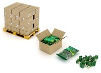 Anschließend werden die gefrorenen Brokkoli-Beutel mit Hilfe eines "Drop-Down-Systems" im Inneren der Schachtel gestapelt, um das verfügbare Volumen zu optimieren.